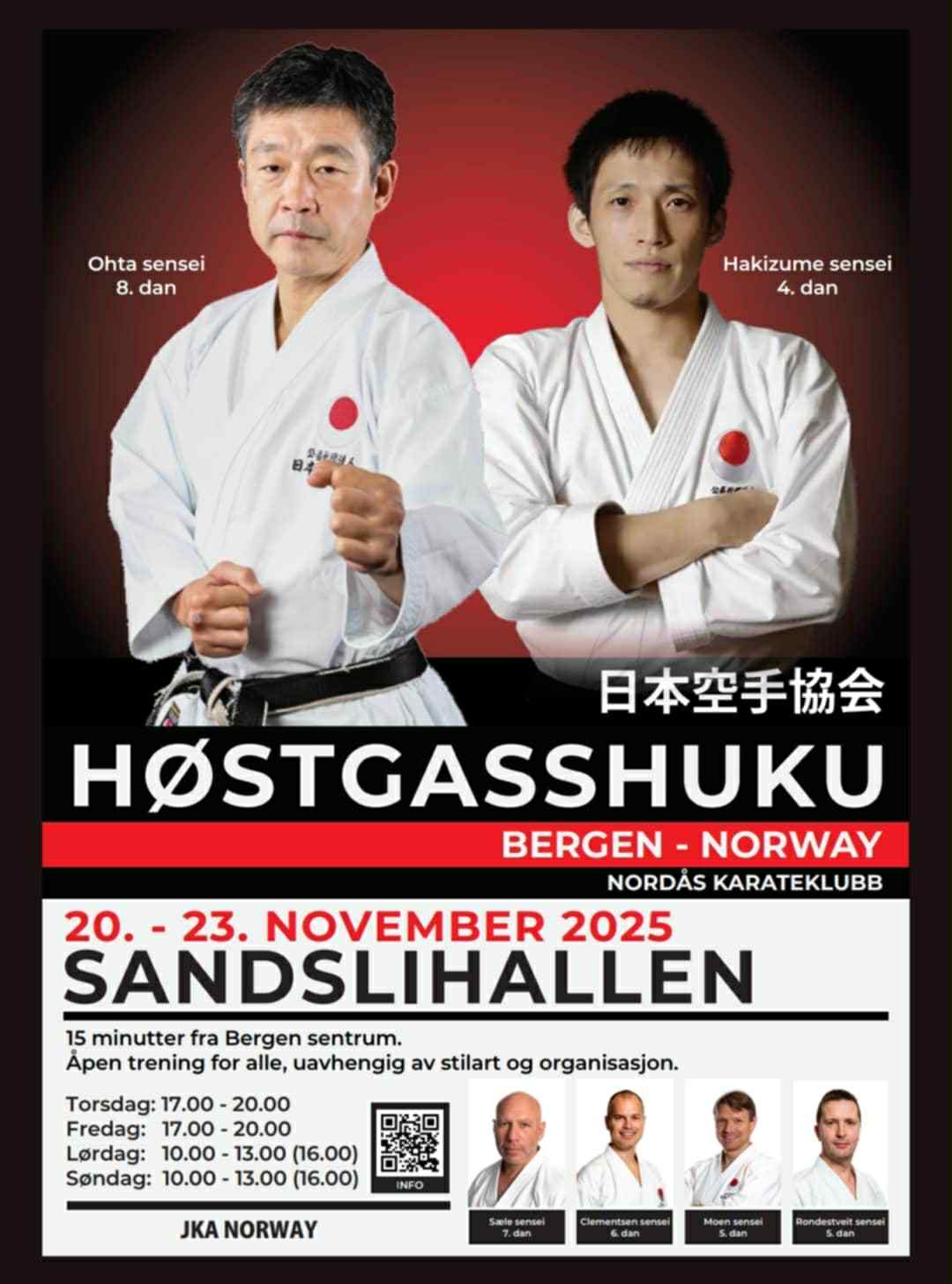 Teknisk arrangørklubb Nordås Karateklubb og JKA Norway inviterer alle karatevenner (uavhengig av forbund) til Høstgasshuku i Sandslihallen.