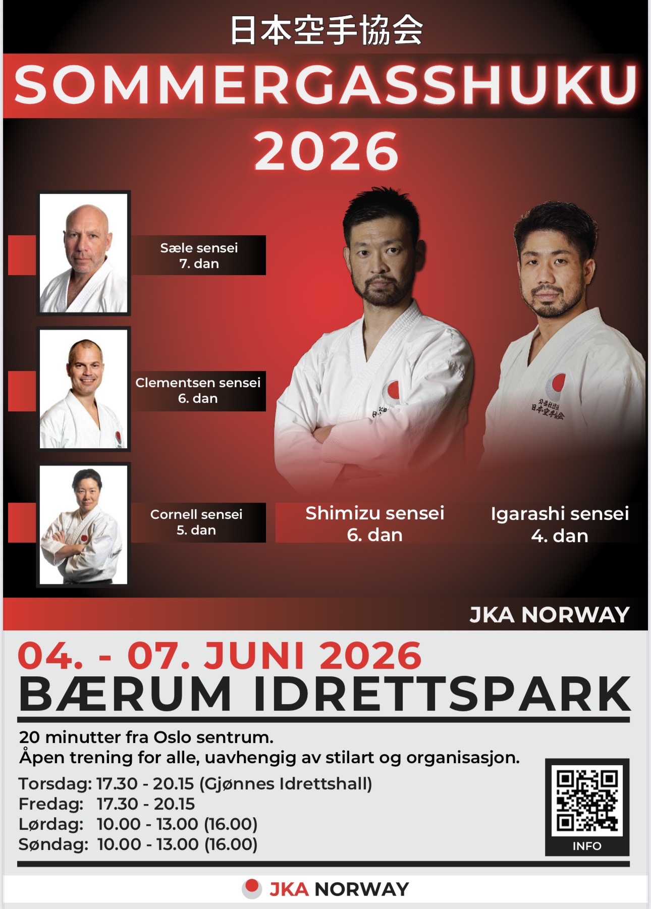 JKA Norway har gleden av å invitere til Sommergasshuku 4. -7. juni 2026 i vakre Bærum!